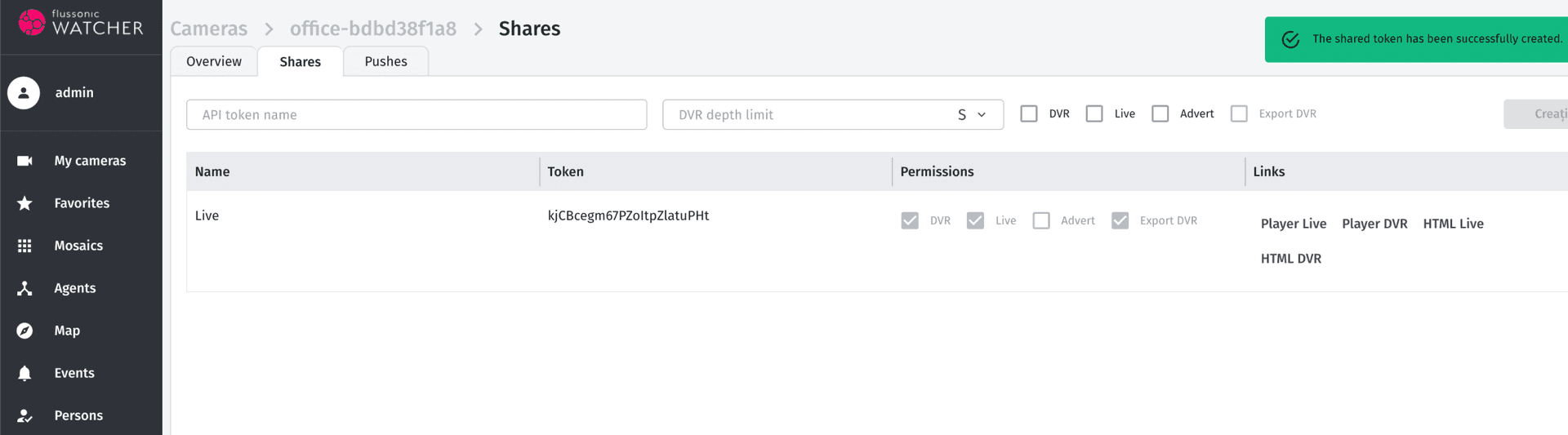 Create a New Token: Set your desired optionsâif you want to share only the live stream without access to archived videos, simply check the box next to âLive.â