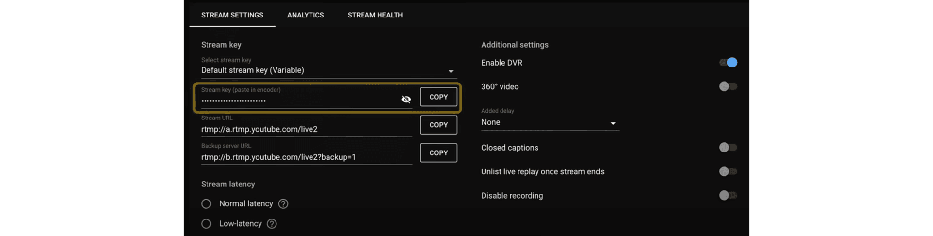 Setting up a live stream is simple! When you create a stream on your chosen social media platform, it will generate a unique stream URL along with a key or name. For instance, on YouTube, it will look something like this:
