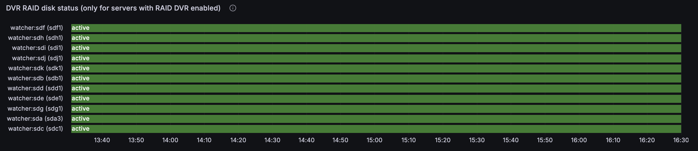 DVR RAID disk status (only for servers with DVR RAID enabled)