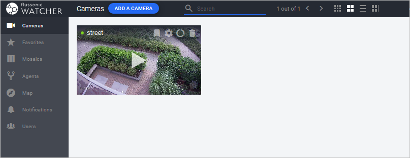 After you have edited the camera settings, click Save. The camera will appear on the management page in the list of cameras: