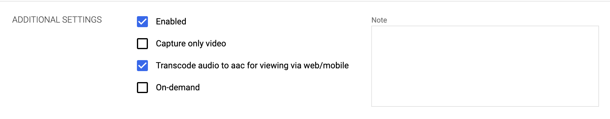 Capture only video. When the box is checked, audio stream from camera is not captured on streamers nor recorded to DVR or played at live video. When unchecked, i.e. by default, the streamer captures both video and audio streams (if available).