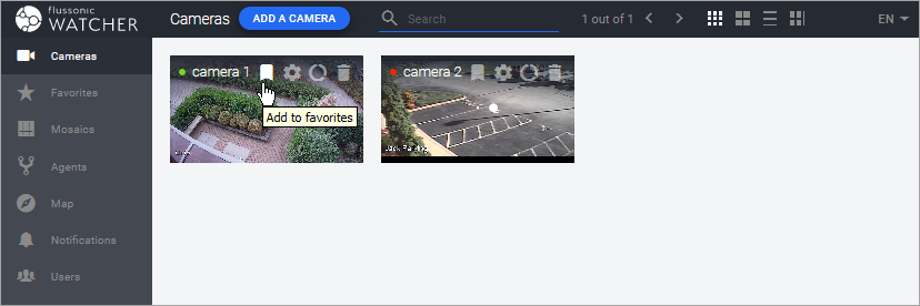 In the list of cameras (which, by default, appears in Tiles mode), find the camera and click the bookmark icon on it: