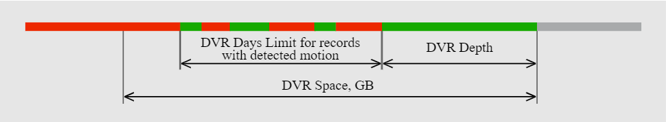 DVR depth. The archive depth. In other words, it’s the number of days after recording during which the video archive is available (then it is purged but motion detection records may be left in place according to the setting described in the next item). Available values: